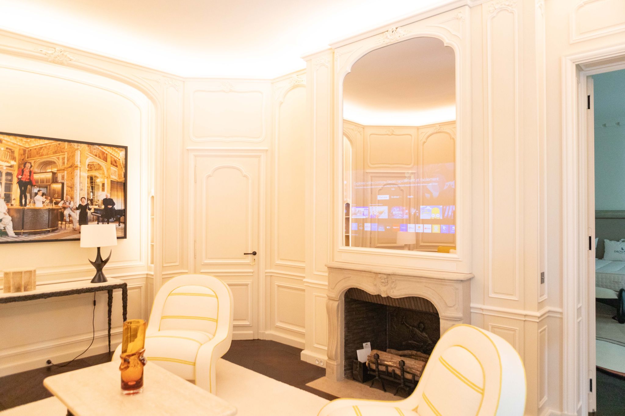 Le confort a été optimisé grâce à la domotique en protocole KNX qui permet un pilotage intuitif des luminaires iGuzzini, depuis une application pour jouer sur l’intensité lumineuse des différents espaces. La lumière s’allume et s’éteint voluptueusement. La sonorisation conçue par VISMES Architecture sonore se fond très subtilement dans des éléments de décor et s’intègre à l’atmosphère élégante de chaque pièce.